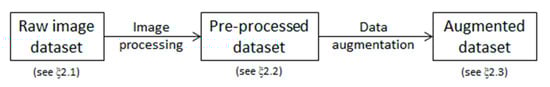 At all stages of image classification or object recognition research, appropriate datasets are required, beginning with the training phase on the CNN-based models to evaluate the performance of any classification or recognition algorithms [19]. Figure 1 presents a block diagram for the generation of the augmented pre-processed datasets.