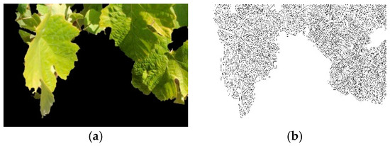 Canny edge detection operator: (a) Segmented leaf image; (b) Canny output result.
