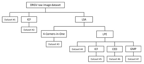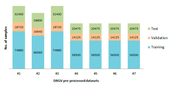Primarily, as mentioned in Section 2.2, a collection of seven pre-processed datasets was extracted from the original DRGV dataset. The generation process of pre-processed datasets #1 to #7 is shown in the flowchart of Figure 9.