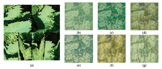 Dataset #7 was generated from the 3644 leaf image patches. It was inspired by the work developed by Zheng and Wang [32] for leaf vein extraction. For data augmentation purposes, each image patch was resized to 231 × 231 pixels to extract 25 sub-images (F25) with a fixed size of 227 × 227 pixels.