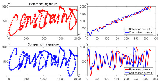 Biometric authentication has always been a field of primary concern in the security application field [1,2]. Person authentication or verification using handwritten signatures is one of the most widely researched behavior-biometrics and the most popular method for identity verification [3]. Usually, signature verification systems can be divided into two categories, namely, off-line and on-line systems, which have a significant difference. Dynamic signatures are too difficult to imitate and forge, even for skilled forgers [4] because they are unique and consistent for a given period. Compared with off-line signatures [5], online signatures are more robust and gain a higher level of security by monitoring dynamic features like time series of position trajectories, pressure, altitude, and azimuth. There is a tendency to recover online signatures from offline signature images [6].
