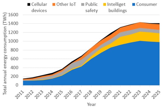 Estimations of energy consumption of all connected user-related devices and equipment for the period 2011–2025 [3].