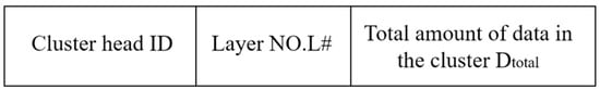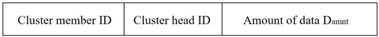 In the slot application phase, all cluster member nodes send the slot request packet RTS to the cluster head node, and the format of the RTS packet of the cluster member node is as shown in Figure 3. The of member node without the data transmission requirement is 0, and the node that needs to transmit data called Active Data Transmission Node (ADTN). If the cluster head node receives the request, it replies a CTS message. Furthermore, if the member node does not receive the CTS after waiting for a certain time, it resends the data request packet. After receiving the data request packet from all member nodes, the cluster head node calculates the total amount of the data that need to be transmitted in the cluster and then randomly selects a neighbor cluster head node from the next layer to forward the RTS packet to the nano control node. The structure of the RTS request packet sent by the cluster head node to the NC is as shown in Figure 4.