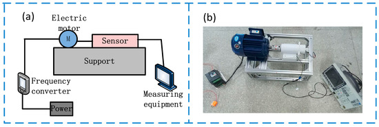 Figure 3 shows the schematic diagram of the experimental facilities. The motor can output different rotational speeds under the regulation of the inverter to simulate the speed output of the real turbodrills. The sensor and the motor are on the same level. In order to simulate the sensor’s installation position in the real turbodrills, the output shaft of the motor drives the sensor’s rotating shaft to rotate, while the stator is fixed. The signals generated by the sensor are read by the GDS-3152 oscilloscope (Goodwill Co., LTD., New Taipei City, Taiwan), and the rotational speed is calculated according to the frequency of the output signal.