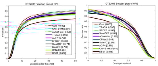 The precision and success plots on the OTB2015 [29] dataset.