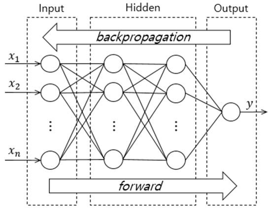 During the learning process, the output of each neuron becomes the input of other neurons located in the direction of progress. In addition, these output values are used in the activation function. Several activation functions can be applied in neural network algorithms. The activation function is selected based on the characteristics of the learning data. Sigmoid or ReLU functions exist as the representative linearly inseparable functions. The Sigmoid function gives an output value between 0 and 1. The ReLU function has an output value of 0 only when the output is below 0, otherwise, the output value is identical to the input one.