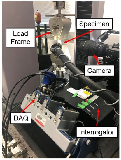 - Schomer, J.J.; Hehr, A.J.; Dapino, M.J. Characterization of embedded fiber optic strain sensors into metallic structures via ultrasonic additive manufacturing. Proc. SPIE 2016, 9803. [Google Scholar] [CrossRef]