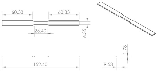 Drawing of coupon used in elevated-temperature testing. All dimensions shown are in mm.