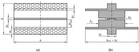 An alternative approach to the determination of the equivalent bending stiffness is to use the conventional strength of materials theory to convert the layered cross section of the harvester into an equivalent homogenous cross section (Figure 3b). The widths of the various sections are thus modified, in this case corresponding to the ratio of Young’s Modulus of that particular section to the modulus of the material chosen as the reference one; the respective distances of the considered sections from the neutral axis are, in turn, kept constant. The equivalent second moment of inertia of the cross section of the whole harvester can hence be obtained by considering the respective layer thicknesses, and taking into consideration Steiner’s Rule [].