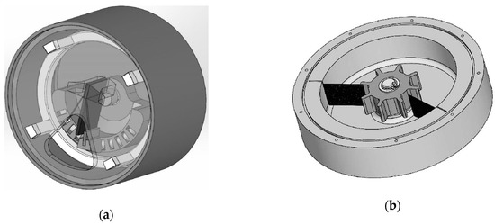 Within the frame of the work on developing a harvesting solution for powering wearable medical sensors, two watch-like devices, operating on the frequency up-conversion principle, are hence studied in collaboration with medical institutions (cf. Figure 13a,b, respectively). The plucking motion is, in this case, generated by a rotating flywheel with several plectra mounted on a rotating hub, whose rotation is caused by the random movement of the hand and arm, which is thus transformed into a periodic excitation of the piezoelectric kinetic harvesters, as analyzed in Section 3 of this work [,].