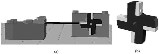 3D model of the frequency up-conversion experimental prototype: (a) Adjustable clamping mechanism with the rotational plucking device; (b) Detail of the excitation mechanism with exchangeable plectra.