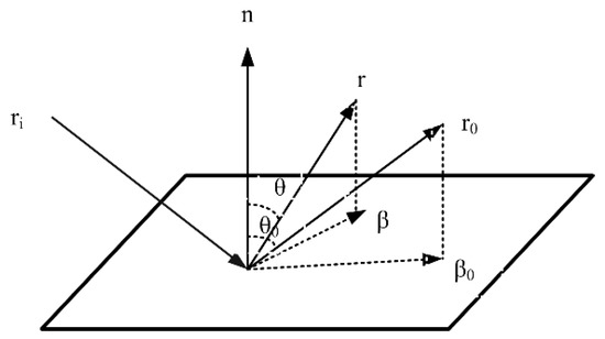 Figure 6 shows a schematic diagram of the BSDF model. β0 is the projection of unit vector r0, and β is the projection of unit vector r along the scattering direction. The modulus between the two |β − β0| warrants further investigation of BSDF.