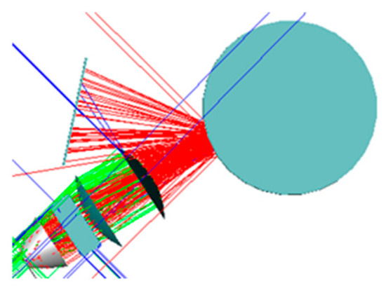 The light sources mainly used in the illumination system are a common light source, laser light source and LED. The common light source consists of a super metal halide lamp, high-pressure mercury lamp, xenon lamp and halogen lamp [10,11,12]. Compared with the traditional light source, the LED light source is characterized by a long life, stable output, low price, etc. Moreover, the lifetime of the LED is more than 100,000 h, and the lifetime of the optical system is improved accordingly. Therefore, the high-power LED is used in the illumination path to ensure the brightness of the figure projected on the surface of the workpiece under the light environment.