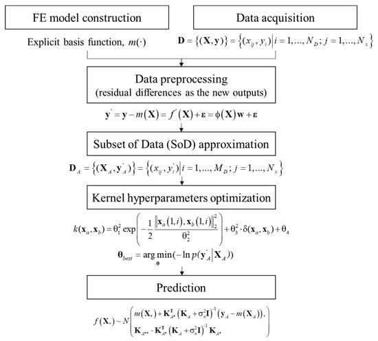 In several previous studies, the prior mean function in GPR is set to a zero matrix, as described in Equation (4). However, the results of FE analysis can be introduced as the prior mean m(∙), also called the explicit basis function, and the input-output relationship is expressed as: