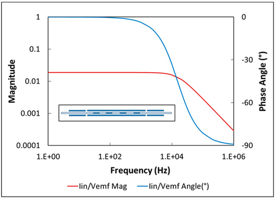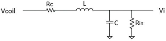 If the detection-cancellation coil is modeled as shown in Figure 5, the transfer function of preamplifier input current (iin) to voltage induced in the detection coil (Vcoil) can be written as