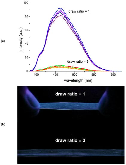 - Lowe, C.; Weder, C. Oligo(p-phenylene vinylene) excimers as molecular probes: deformation-induced color changes in photoluminescent polymer blends. Adv. Mater. 2002, 14, 1625–1629. [Google Scholar] [CrossRef]