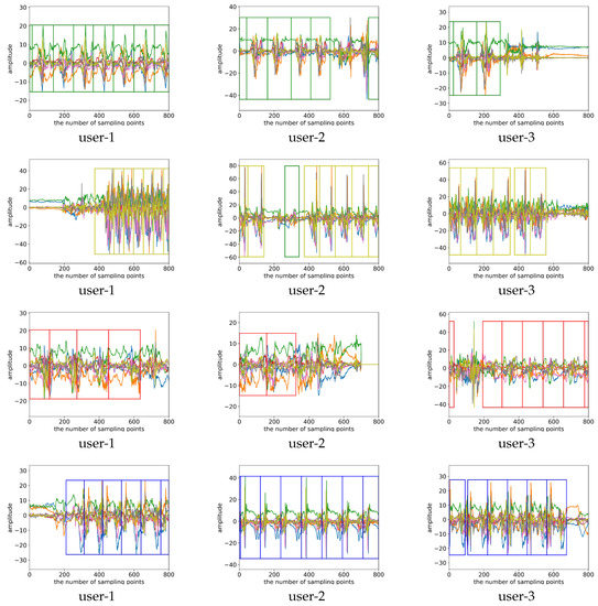 Specifically, for the NP_CMS sport data, we added two lines of zero between the triaxial acceleration and the triaxial rotational angular velocity in a process called “zero padding” [25]. This effectively avoids the disturbance caused by different characteristics of the two kinds of signals during feature extraction.