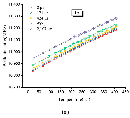 - Bao, Y.; Chen, G.D. Temperature-dependent strain and temperature sensitivities of fused silica single mode fiber sensors with pulse pre-pump Brillouin optical time domain analysis. Meas. Sci. Technol. 2016, 27, 11. [Google Scholar] [CrossRef]