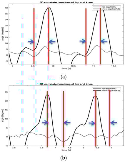As an alternative solution, the application of the accelerometer provides a simple means for analyzing gait in real-time for monitoring physical activity levels and classifying movements [9,10,11,12]. Gyroscopes were applied in the measurement of angular rate and the angle of various joints by mounting multiple devices on the lower or upper extremities [12,13,14,15]. In this paper, a wireless IMU sensor network (i.e., two IMUs) is used to enable a three-dimensional angular assessment of the thigh and the knee for gait analysis [16]. The differential changes of the rotation angles are also used to reduce the influences of the drift and offset noises that are common in IMU raw data. In particular, this paper presents gait phase differences using the sagittal, frontal, and transverse directional angles of the knee joint as a novel parameter to classify normal and abnormal gait patterns. The preliminary experimental results demonstrate that the proposed parameter is promising and can carry out gait pattern identification.