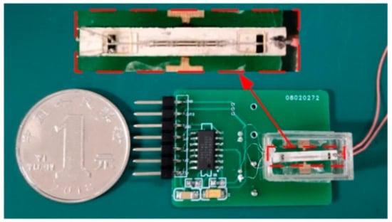 The DETFs were made from a Z-cut quartz wafer. The fabrication process was the same as that in []. To form a piezo bimorph, two PZT-8 plates with an opposite polarization direction were first bonded on both sides of the copper sheet. Then, the spacers and dual DETFs were symmetrically bonded on the upper and bottom surfaces of the piezo bimorph. The epoxy resin adhesive was used for the entire bonding process of the device. Figure 5 shows the photograph of the composite sensor with the gate oscillator circuit.