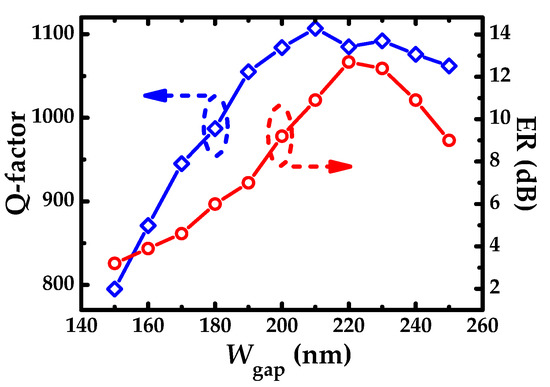 Q-factor and ER as a function of coupling distance Wgap.