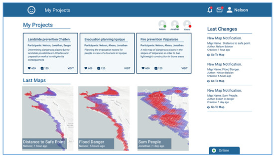 After selecting a project, the user can see the maps that have been generated for this project sorted by authorship (Figure 5) under the username of the team member who created them.