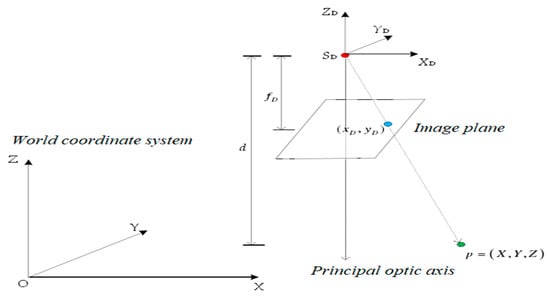 where λ was the scale factor, d was equal to λ, fD and fD was the focal length. Therefore, Equation (4) could also be rewritten as:
