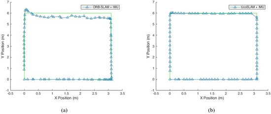 Proposed hybrid systems. (a) ORB-SLAM + IMU. (b) UcoSLAM + IMU.