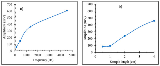 With an increasing fundamental frequency of excitation and wire length, the harmonics’ amplitudes increase, which is important for sensor design as these dependences are not linear, as shown in Figure 11.