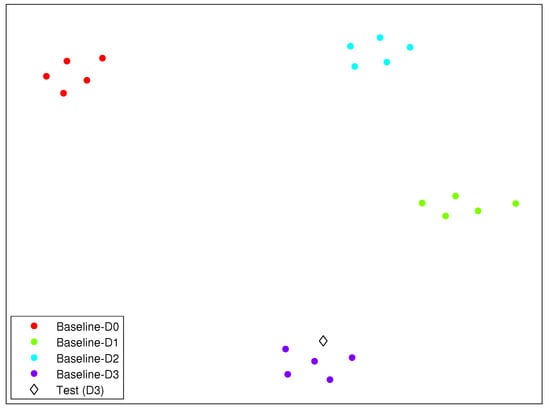 t-SNE is applied to the dimensional data set in Equation (15) to find a collection of dimensional map points: