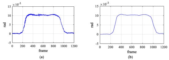 Preprocessing of rotational angle using a low-pass filter. (a) Raw data and (b) filtered data.