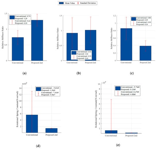 Based on perturbation of the nominal values in Table 3, the upper and lower bounds were determined as: (1) the range of the rotational spring constants ( and ) was set between 1 × 107 N·m/rad and 1 × 1013 N·m/rad based on the change of the natural frequencies, since the outside of this range does not change the natural frequencies; and (2) to actuate the parameter compensation, the range between upper and lower bound for KG, KS and KC were determined from 0.3 to 1.5 (i.e., −70%–50%).