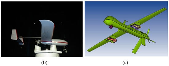 Real-measured or electromagnetic calculation models of three unmanned aerial vehicles (UAVs); (a) UAV1; (b) UAV2; (c) UAV3.