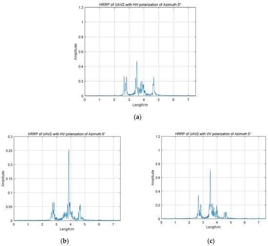HRRPs of UAV2 with full polarization of azimuth 0°; (a) UAV2 of HH channel; (b) UAV2 of HV channel; (c) UAV3 of VV channel.