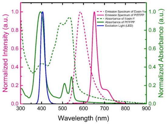 The glass substrate (0.7 mm) was purchased from Corning (New York, NY, USA); platinum(II) meso-tetrakis (pentafluorophenyl) porphyrin (PtTFPP) was purchased from Frontier Scientific, (Logan, UT, USA); cellulose acetate (CA) powder was purchased from Showa Chemicals (Tokyo, Japan) and ethyl cellulose (EC) was purchased from Tokyo Chemical Industry Co., LTD (TCI) (Chuo City, Japan). Other reagents such as EtOH (99.5%) and SiO2 (4 micron, 99.9%) were purchased from ECHO Chemical co Ltd. (Miaoli, Taiwan). Eosin Y (99%) and acetic acid (99%) were purchased from Sigma Aldrich (St. Louis, MO, USA). Tetrahydrofuran (THF, 99.9%) and toluene (99.8%) were purchased from TEDIA (Fairfield, CT, USA). The received chemicals were used without any further purification.