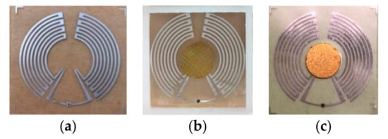 The disconnected tag was fabricated in a roll to roll (R2R) process [26], as shown in Figure 11a. After the attachment of a 3D (three dimensional)-printed resin support frame, the TPU film, and the copper patch, the finished finger-controlled tag is shown in Figure 11b. In addition, since the test cables are sensitive to finger touching, a tag with a copper patch stuck directly on the disconnected tag plane by the silver-epoxy adhesive was used for impedance measurement to avoid additional errors, as in Figure 11c. Since the major structure of the proposed tag adopts the R2R process, the support frame and copper patch of the tag could also be fabricated in mature and cheap processes, such as thermal forming and (computer numerical control (CNC) machining. Therefore, the low cost of the proposed tag can be achieved in large scale processing and production.