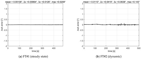 Virtual, analytical or synthetic sensor (VS)-AoA validation results: maximum (dynamic) = , maximum error (steady state) = .