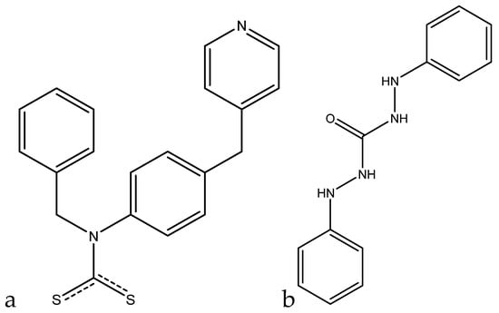 The structure of (a) the dithiocarbamate-modified N-benzyl-4-(pyridin-4-ylmethyl)aniline (BP-DTC) ligand and (b) 1,5-diphenylcarbazide.