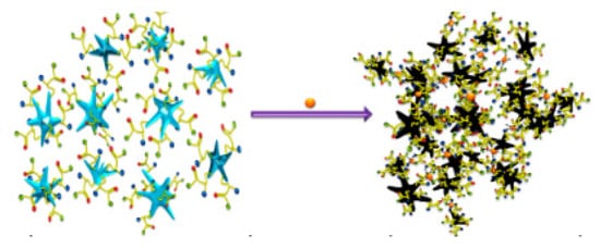 Complexation induced aggregation of cysteine-functionalized gold nanostars (Cys-AuNSs). Reprinted with permission from Reference []; Copyright 2014 American Chemical Society.