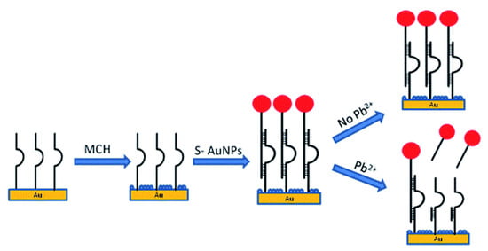 - Wang, Y.; Irudayaraj, J. A SERS Dnazyme Biosensor for Lead Ion Detection. Chem. Commun. 2011, 47, 4394. [Google Scholar] [CrossRef]