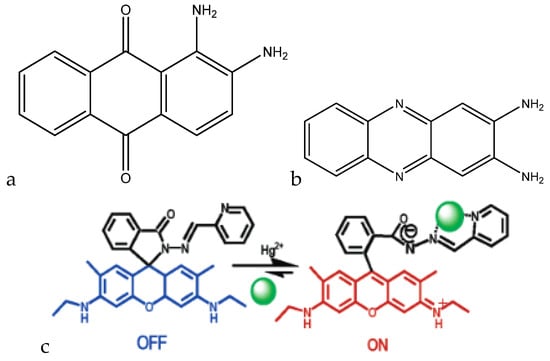 - Kim, S.; Gwon, S.; Bae, J. A Highly Selective Ratiometric Chemosensor For Hg2+ Based on 1,2-Diaminoanthraquinone. Sen’i Gakkaishi 2014, 70, 254–257. [Google Scholar] [CrossRef]