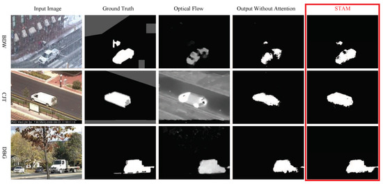 | Category | STAM | DeepBS [33] | SuBSENSE [46] | PBAS [49] | GMM [18] |