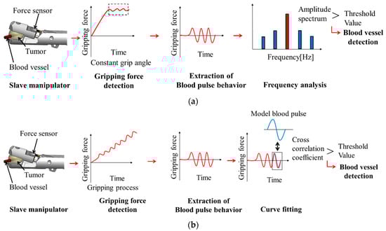 Blood vessel pulsation is detected as a function of the gripping force. The tumor is compressed by a gripper equipped with a force sensor. Compression of the tumor facilitates the inflation of blood vessels inside the tumor to the surface. Understanding the tumor’s mechanical compliance using force sensing and applying appropriate compression produces a gripping force fluctuation waveform.