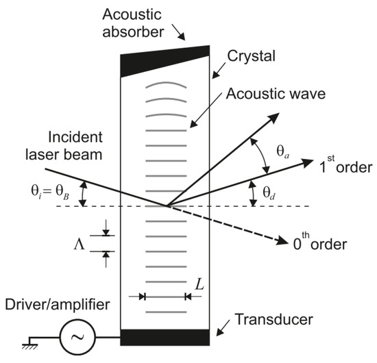 - Römer, G.R.; Bechtold, P. Electro-optic and acousto-optic laser beam scanners. Phys. Procedia 2014, 56, 29–39. [Google Scholar] [CrossRef]