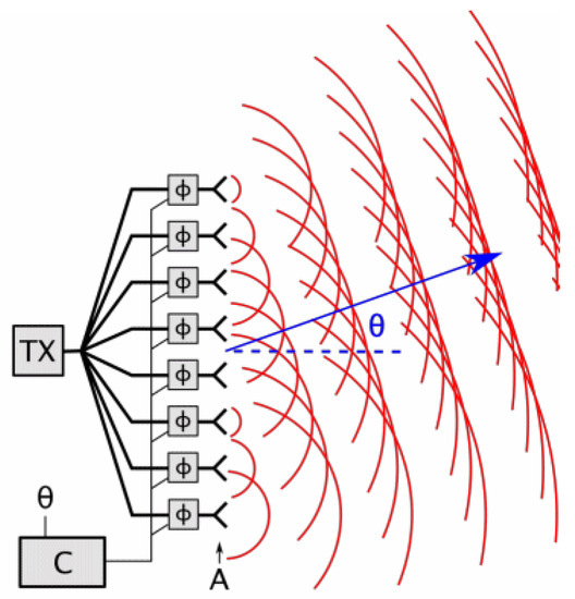 - Wikimedia Commons. File: Phased Array Animation with Arrow 10frames 371x400px 100ms.gif—Wikimedia Commons, the Free Media Repository. 2019. Available online: https://en.wikipedia.org/wiki/File:Phased_array_animation_with_arrow_10frames_371x400px_100ms.gif (accessed on 22 May 2019).