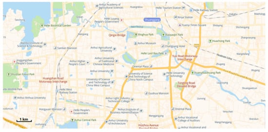Simplified digital model of the Hefei road network.