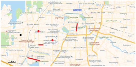 We have worked closely with relevant departments to use existing drones and patrol vehicles to patrol the relevant roads in Hefei, Anhui Province. The urban road traffic area we need to focus on is shown in Figure 7. In this case study, we discussed with relevant departments for many times and finally identified several "hot spots", as shown in Figure 8.