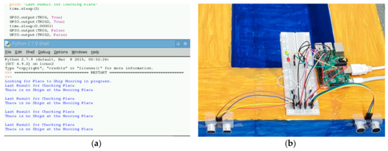 Embedded technologies such as big data, artificial intelligence and the internet of things, represent the adoption of Industry 4.0 technology in the maritime field. A variety of new communications technologies will dominate the next generation of communications between smart ships and smart ports, including satellite communications. It is no paradox that humans are surrounded by technologies and that is why intelligent technologies do almost all the work we do during our daily existence. Therefore, humans are trying hard to develop numerous automation areas, for instance, smart strollers, smart cars, smart watches, smart cameras, and smart umbrellas, etc. [1]. Even the places where we study [2], live, and work have become smart. In this context, all objects and elements are replaced by their smart alternatives. For instance, traditionally modeled ships and ports are evolving into smart ships and ports and this offers several premium opportunities for research in marine science. It should be mentioned that large companies from developed countries are still studying these two big projects. Thus, enormous thriving corporations in Korea, Japan, and China are proposing IoT solutions for smart ships [3,4,5,6] and developed countries in Europe (such as Germany and The Netherlands) are actively working on smart ports. In this study, we suggest a system that supports berthing by automatically locating the berth in a port based on the IoT. Upon receiving a request from a ship arriving at the port, the system automatically sends data about the location where it could dock before reaching that location. The system uses information from a range of ultrasonic sensors associated with the available space. However, everything could be done by automating ships. The new concept of smart ships focuses not only on collecting and controlling data independently, but also refers to free communication with other ports and ships. In this matter, the role of different sensors, devices, and software installed in ports and smart ships is important when performing these functions. In particular, the demand for software for smart devices is expected to increase significantly over the next few years. Each transfer requires a special automation system. In order to fully automate and personalize the entire ship and port system, the parts and process must be automatically split before the goal is achieved. At this point, we can conclude that with such a large object, it is part of the initial process automatically and the entire system turns into an intelligent or automatic monitoring system. When newly emerging technologies such as the IoT are applied to actual transportation procedures, one of the available means of transport is the port berthing process. The system currently in use has many drawbacks. In this study, we suggest a system that supports berthing by automatically locating one in the port based on the IoT. The system uses information from a range of ultrasonic sensors associated with the available vacant berths.