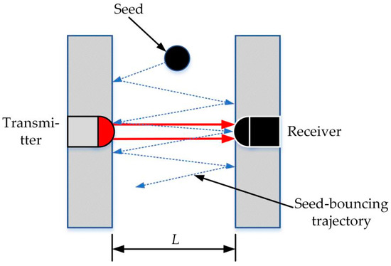 In addition, due to some varieties of seeds having a large volume, just a few light beams can monitor the majority of falling seeds [17]. In order to avoid interference, there should be a clearance between any two adjacent light beams [18]. However, a small seed’s diameter is often less than 3 mm, and the trajectory of a falling seed cannot be controlled. Thus, falling seeds with a small volume can easily pass through the clearances and lead to a missing detection [19].