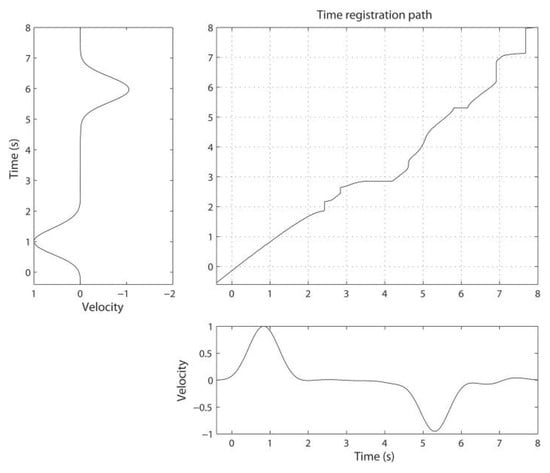 Dynamic Time Warping [] is a technique to find the optimal alignment between two time-series, by considering the possibility to nonlinearly “warp” one time-series by stretching or shrinking it along its time axis. The amount of warping needed for the alignment is then used as a measure of the difference between the two time-series. A typical application of DTW is speech recognition [], where it is used to determine if two waveforms represent the same spoken phrase. In a speech waveform, the duration of each spoken sound and the interval between sounds can vary, but the overall speech waveforms must have a similar “shape”. In addition to speech recognition, DTW has also been found useful in many other disciplines, including, gesture recognition [], robotics [], manufacturing [], and health monitoring [,,].